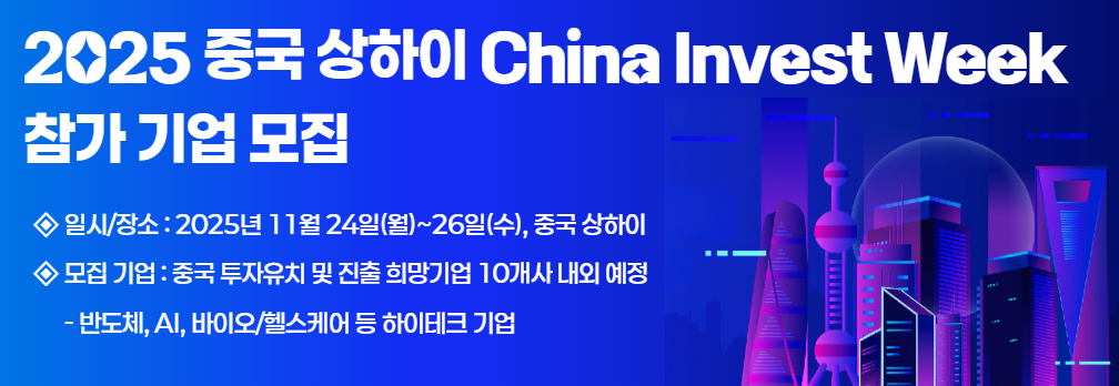 위클리 #278. 2025 중국 상하이 China Invest Week 참가 스타트업 모집